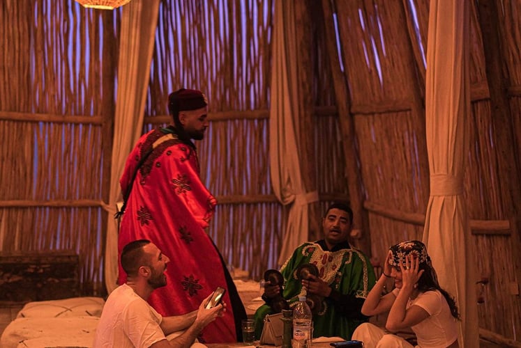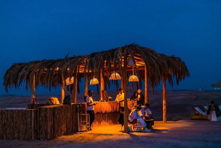 مع غروب الشمس فوق صحراء أغافاي، تتحول الأجواء إلى لوحة ساحرة من الألوان والأنغام، حيث يمكنك الاستمتاع بعشاء فاخر ومشاهدة العروض الحية وسط مناظر بانورامية هادئة. كل تفصيل في هذه التجربة صُمّم ليمنحك إحساسًا بالراحة والتميز بعيدًا عن صخب المدينة.