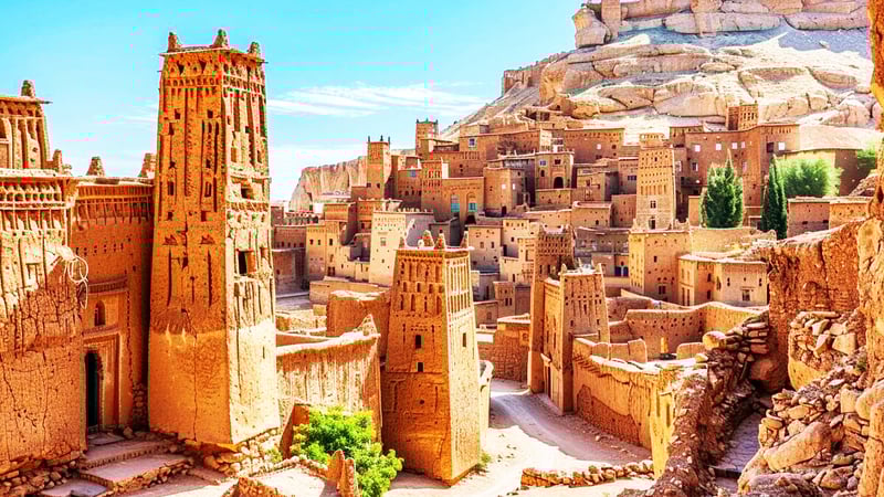 Your first stop is the UNESCO-listed Ait Ben Haddou Kasbah, a fortified village known for its striking architecture and as a filming location for blockbuster movies like "Gladiator" and "The Mummy." After exploring the kasbah, continue to Ouarzazate, also known as the "Gateway to the Desert." Visit the Taourirt Kasbah and the famous Cinema Museum, where you’ll discover the city’s significant role in the film industry.