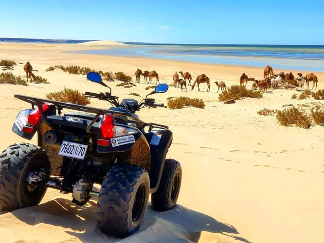Experience the ultimate adventure of quad biking in Dakhla! Ride on the dunes, traversing the majestic desert landscapes and enjoying stunning views of the ocean. Our package includes convenient transport, making it easy for you to focus on the thrill and beauty of the journey. Perfect for thrill-seekers and nature lovers alike, this adventure promises an unforgettable ride through Dakhla's unique terrain.
