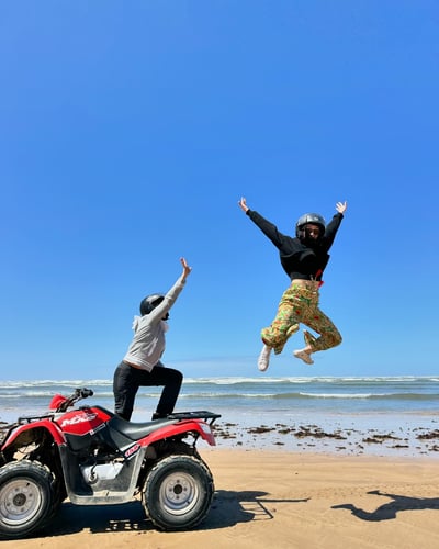 Explore quad rides and tours in Essaouira with our varied selection of routes suitable for all levels. Discover Essaouira and its surroundings uniquely on a quad, venturing off the beaten path. Exciting adventures await you from sunrise to sunset in an exceptional setting. Your quad excursion will take you through thrilling dunes and deserted beaches, as well as along winding tracks through the forest, where you will discover the rich local fauna and flora. We do not mix groups, ensuring a personalized experience with your guide who can adapt the quad ride according to your level and preferences.